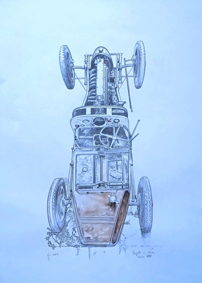 Cependant, un de mes dessins était présent sur le stand Arts and Cars tenu par Baptiste Nicolosi et aidé par Martial Castaniei. Ces derniers sensibles à mes œuvres ont inscrit ce dessin de Bugatti 35 à la première vente automobilia de la maison Gros et Delettrez. Je souligne la qualité du catalogue et des lots.